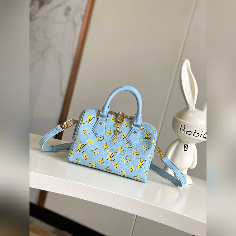 Louis Vuitton M46093 Sininen monogrammi kohokuvioitu nahkainen käsilaukku