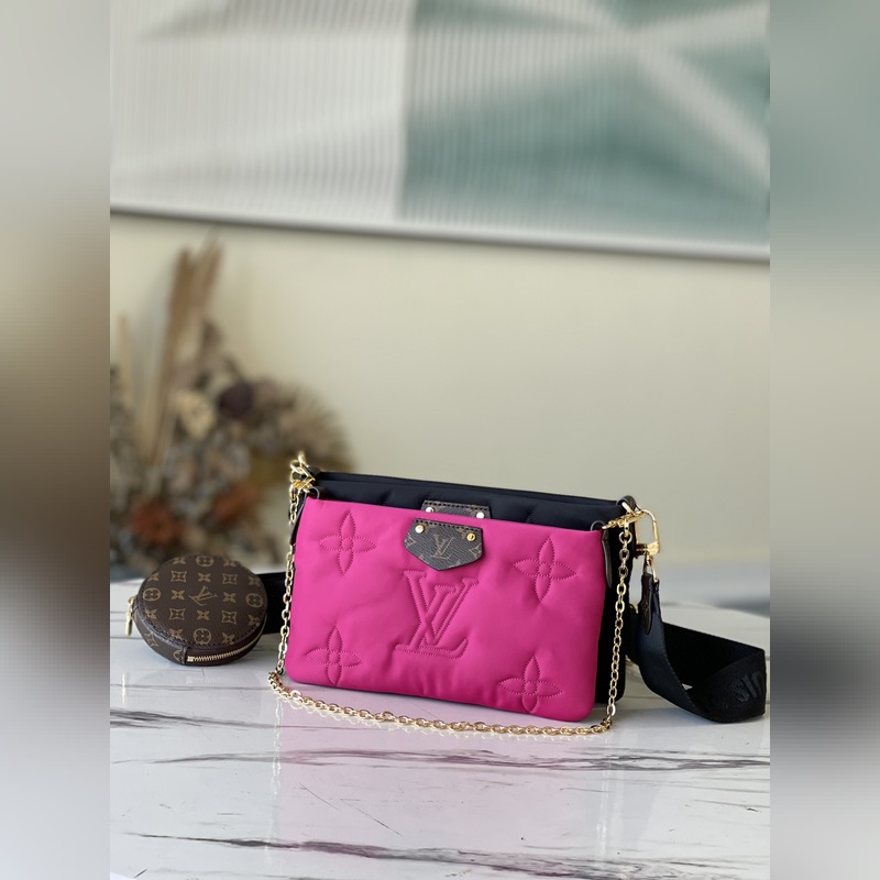 LV Maxi Multi Pochette M58980 musta ja ruusunpunainen korkealaatuinen