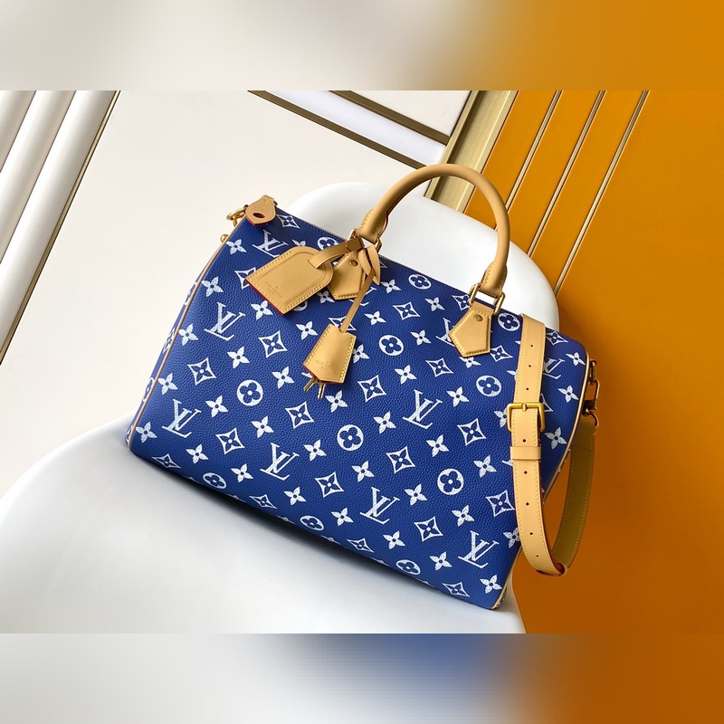 Louis Vuitton M21368 Sininen nahkainen käsilaukku Damier-kuviolla