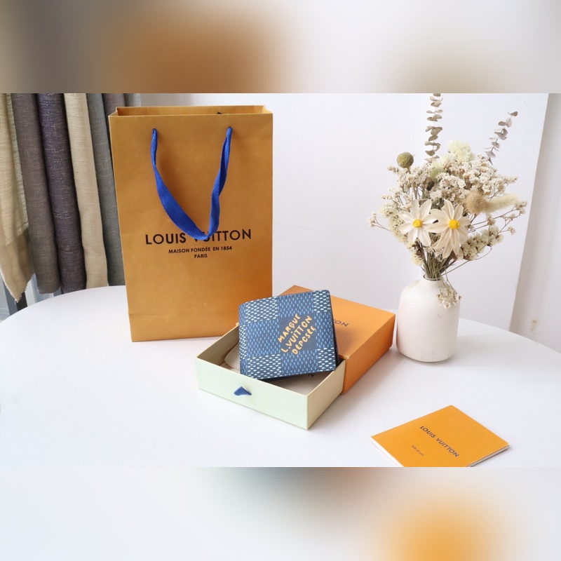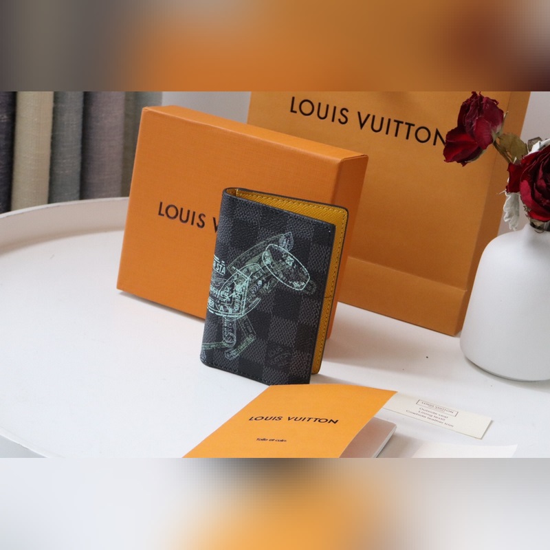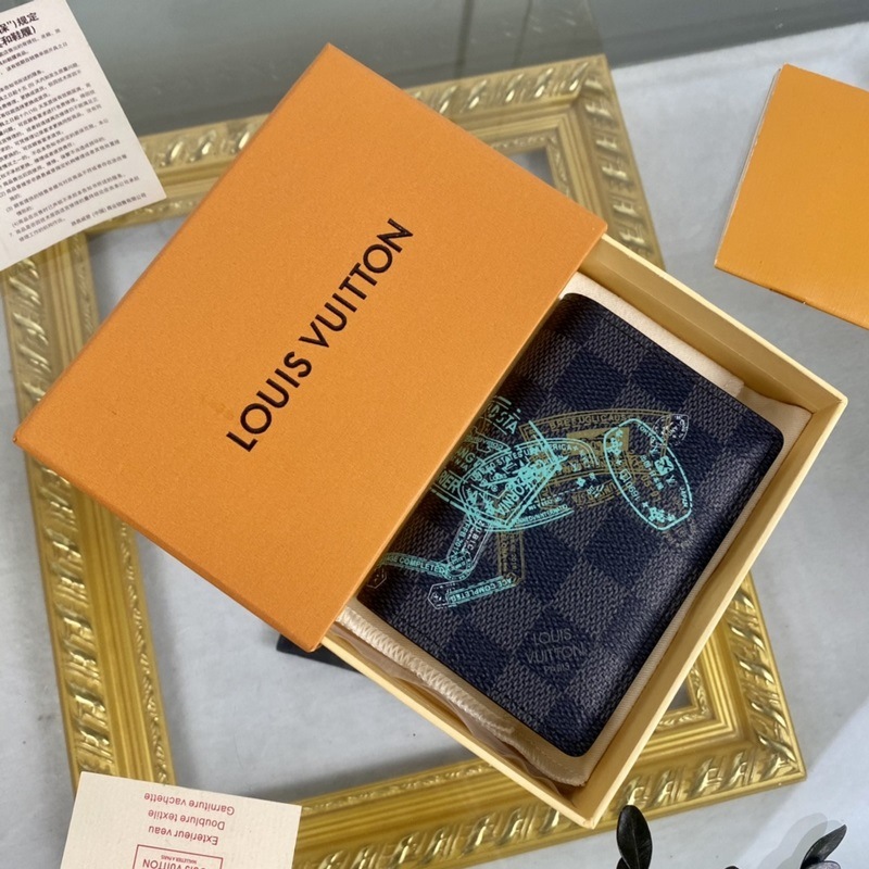 LV N64602 Miesten korttikotelo Uusi silkkitulosteinen kangaslompakko