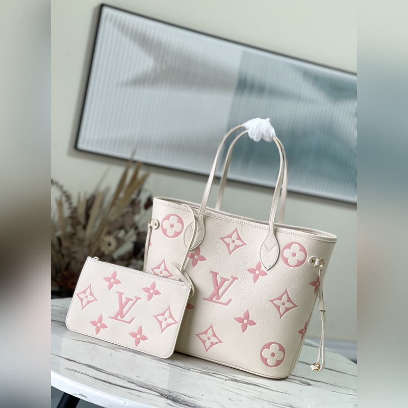 Louis Vuitton Neverfull M45686 Cream&Pink Print Medium Kangaskassi