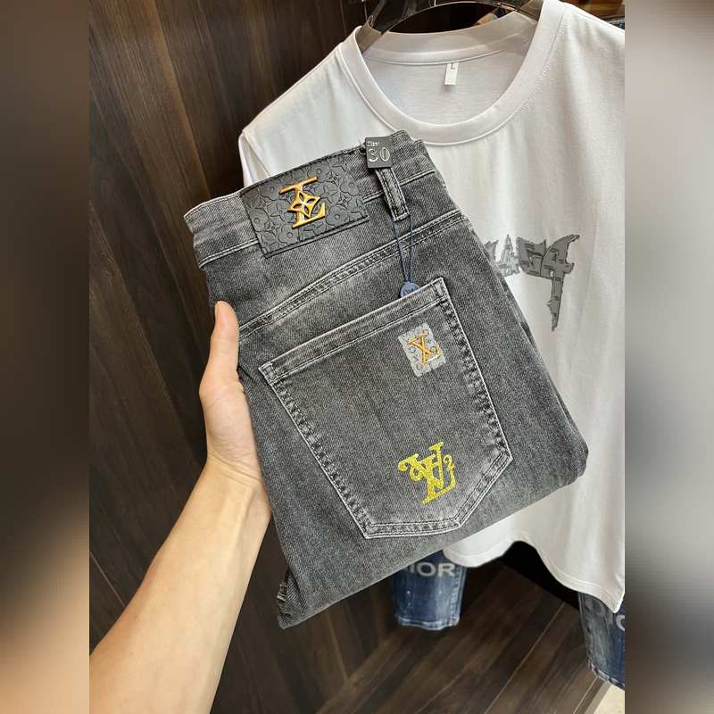 LV Exclusive trendikkäät miesten farkkuhousut Huippuluokan eurooppalaiset vapaa-ajan housut