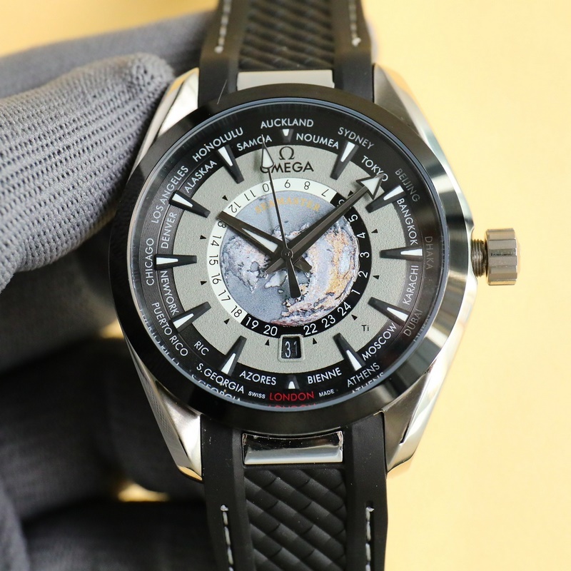 Omega Seamaster Worldtimer 220.92.43.22 50mm musta keraaminen laatukello