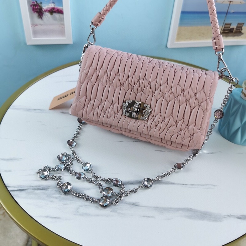 Miu Miu 5BH012 Crystal Chain Olkapääreplica Bag New Edition vaaleanpunaisena