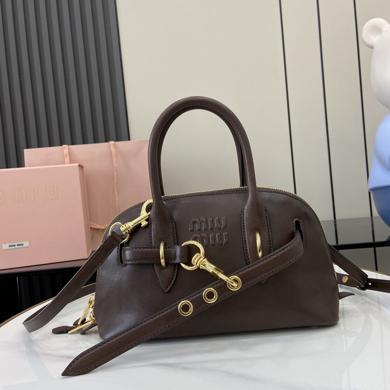 Miu Vintage Bowling Replica Bag ensiluokkaista pehmeää lampaannahkaa ja antiikkimetalliaksentteja