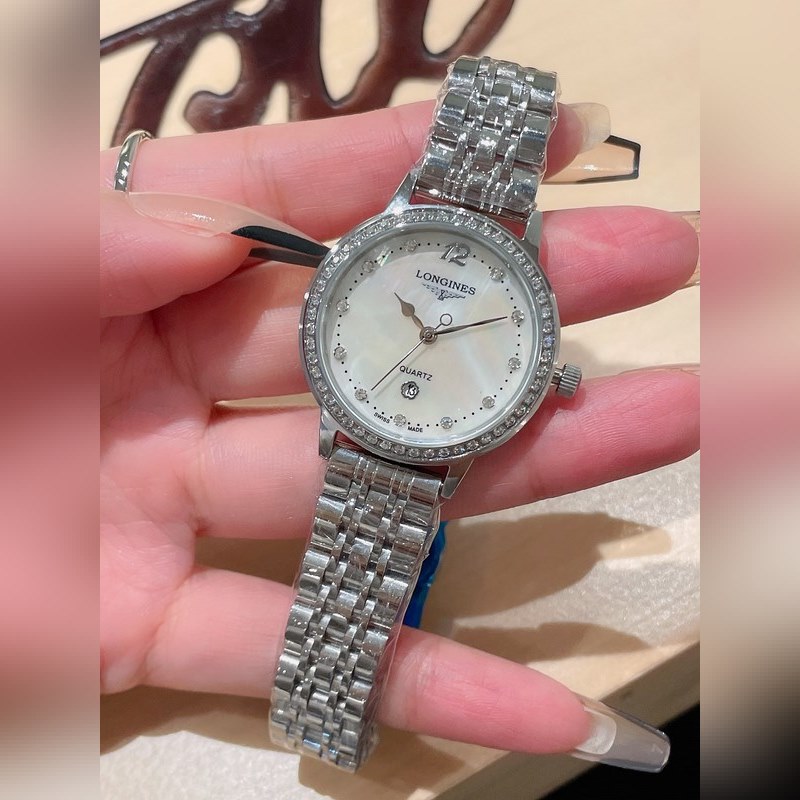 Longines Symphonette Quartz -replica kellot helmiäiskellotaululla ja timanteilla
