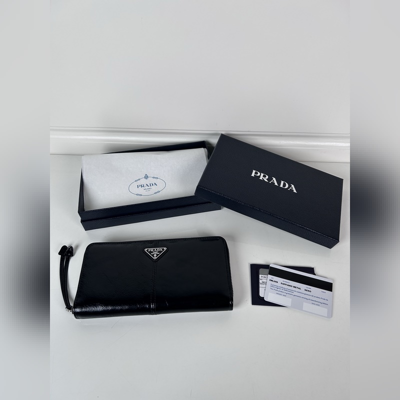 Prada 2ML059 miesten musta öljyvaha nahkainen vetoketjukassi