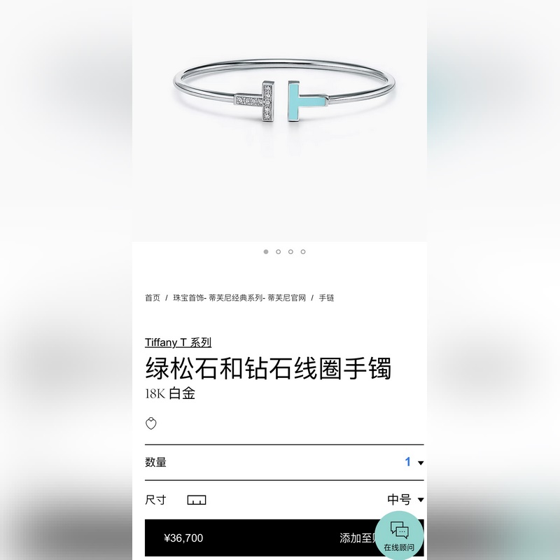 Tiffany&Co. Classic T-sarjan hopea timanttien turkoosinauhalla