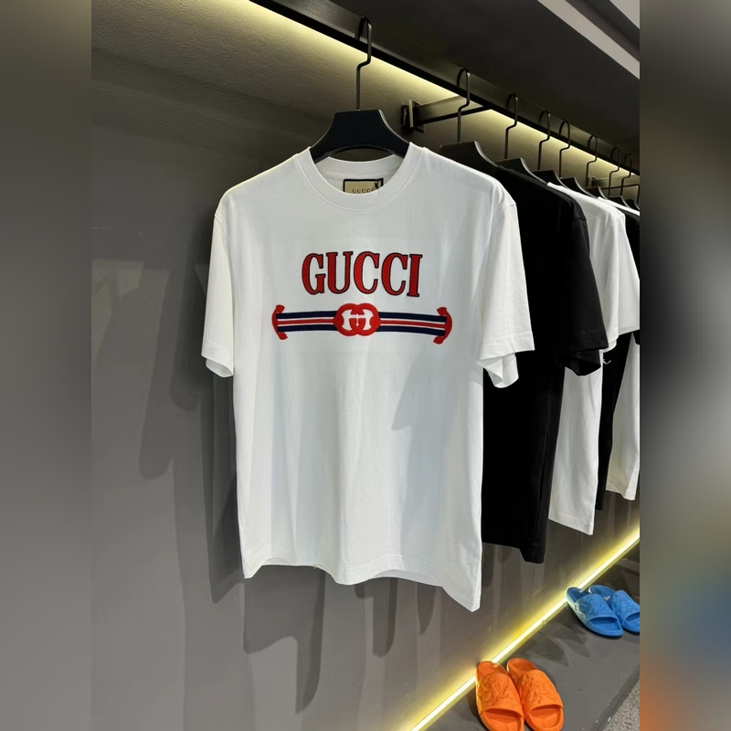 Gucci 2025 SS Early Spring Pyöreäkauluksinen T-paita logobrodeerauksella
