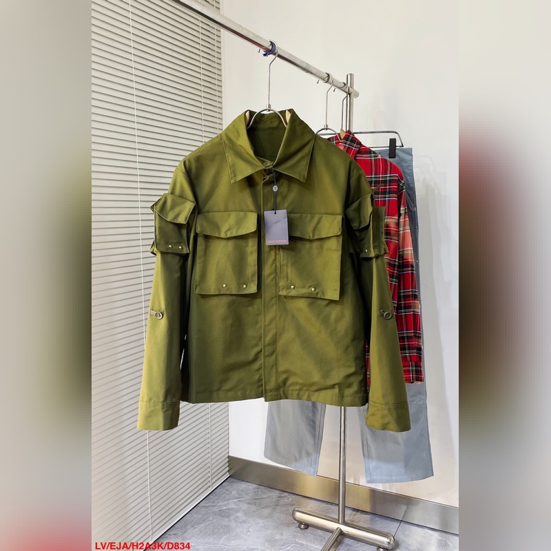 D834 LV Louis Vuitton puuvillainen monitaskuinen kangastakki korkealaatuinen sotilaatyyli