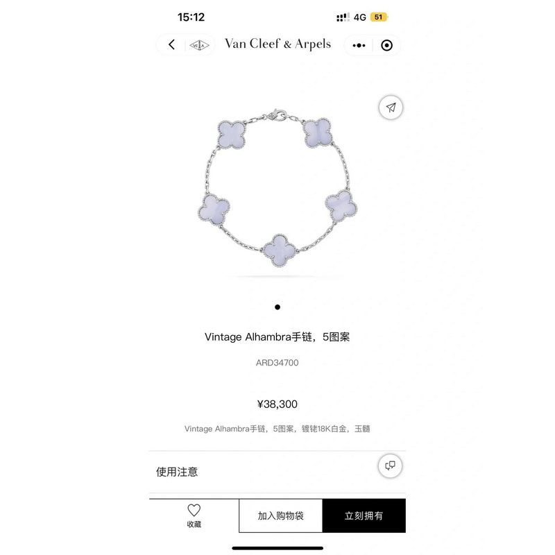 Van Cleef&Arpels Classic Alhambra Motif -viisikukkaranneke 18K kultaa kimalteleva muotoilu