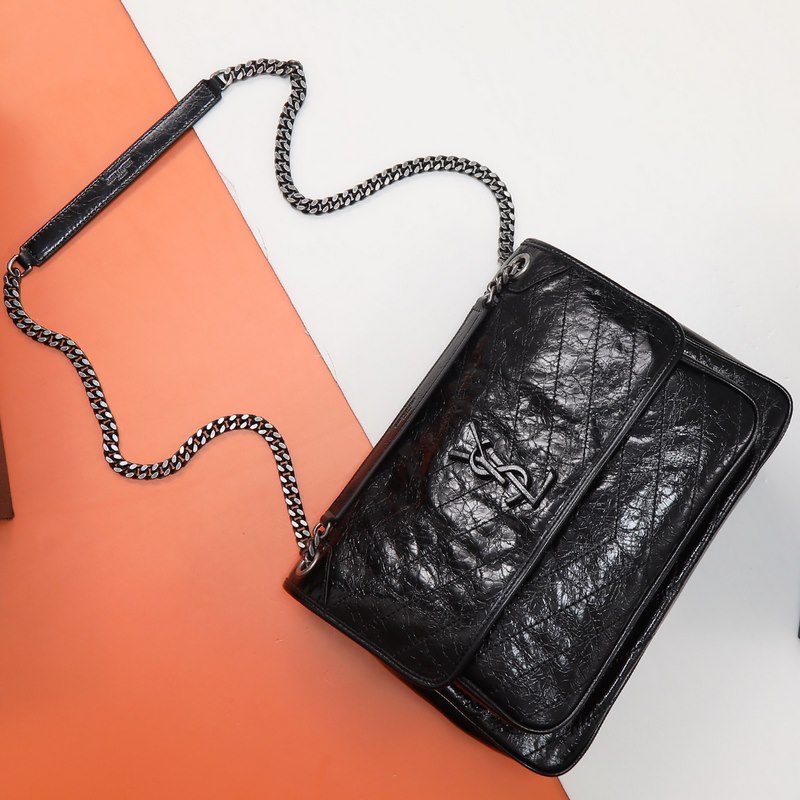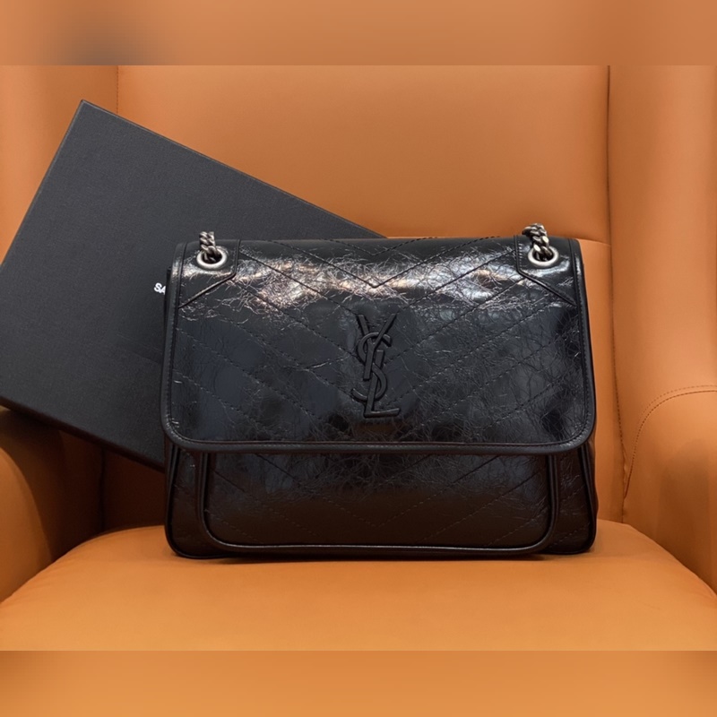Aito YSL 498883D musta aitoa nahkaa päivitetyn version käsilaukku