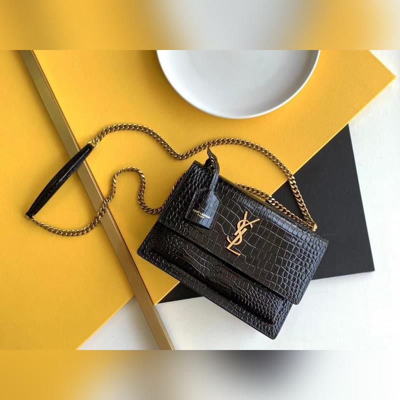 YSL Sunset Replica Bag Suuri musta krokotiilikuvio 442906