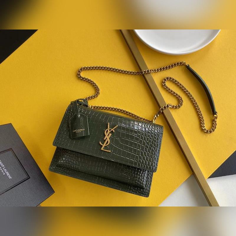 SYSL Sunset Replica Bag 442906 Vihreä Suuri krokotiilikuvioinen Crossbody Bag