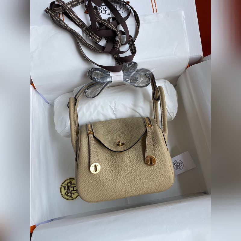Hermès Lindy -käsilaukku TC-nahkainen norsunharmaa kulta- ja hopealaitteisto