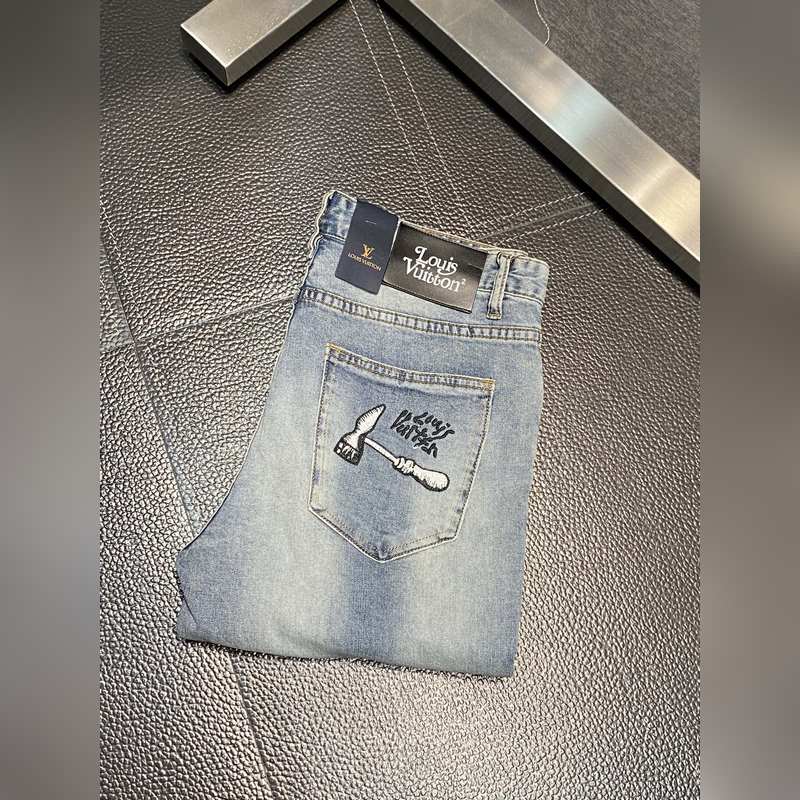 LV Exclusive trendikkäät miesten farkkuhousut Huippuluokan eurooppalaiset vapaa-ajan housut