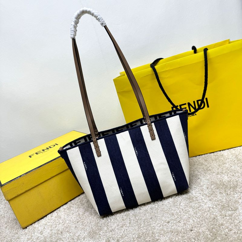 FENDI White Medium Woven Leather Tote Logo Design
