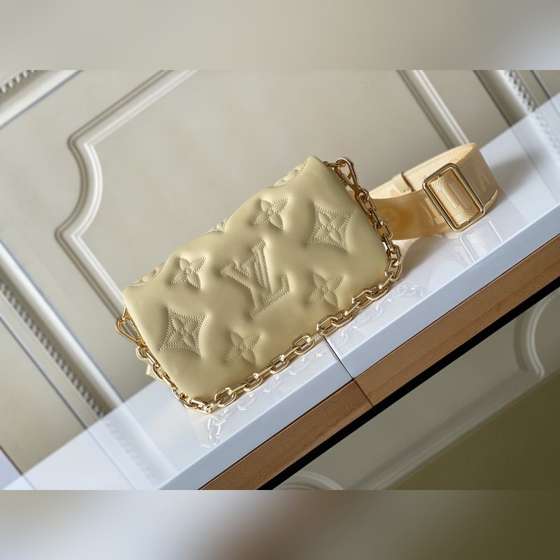 LV-lompakko hihnassa M81400 keltainen käsilaukku laadukkaalla muotoilulla