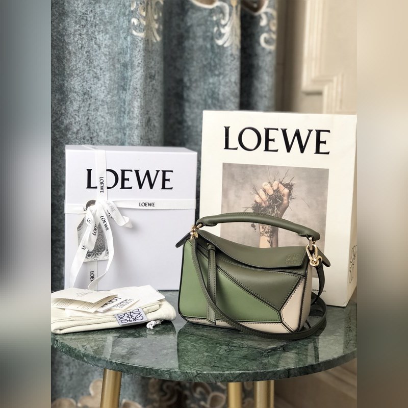Loewe Puzzle Mini Classic Nahka Replica Laukku 10172 Musta Vihreä Laatu