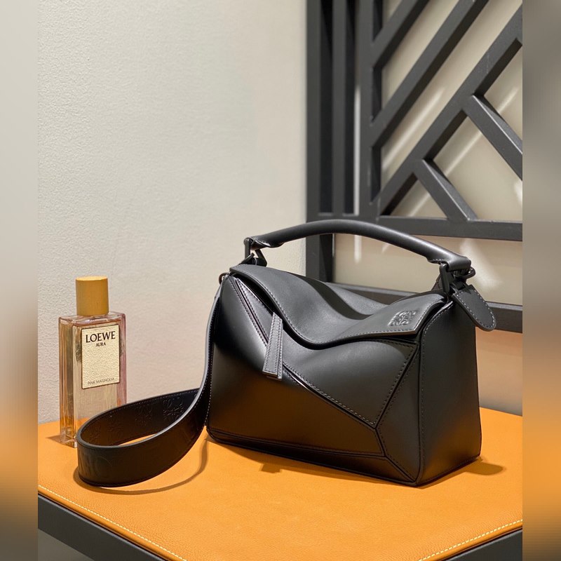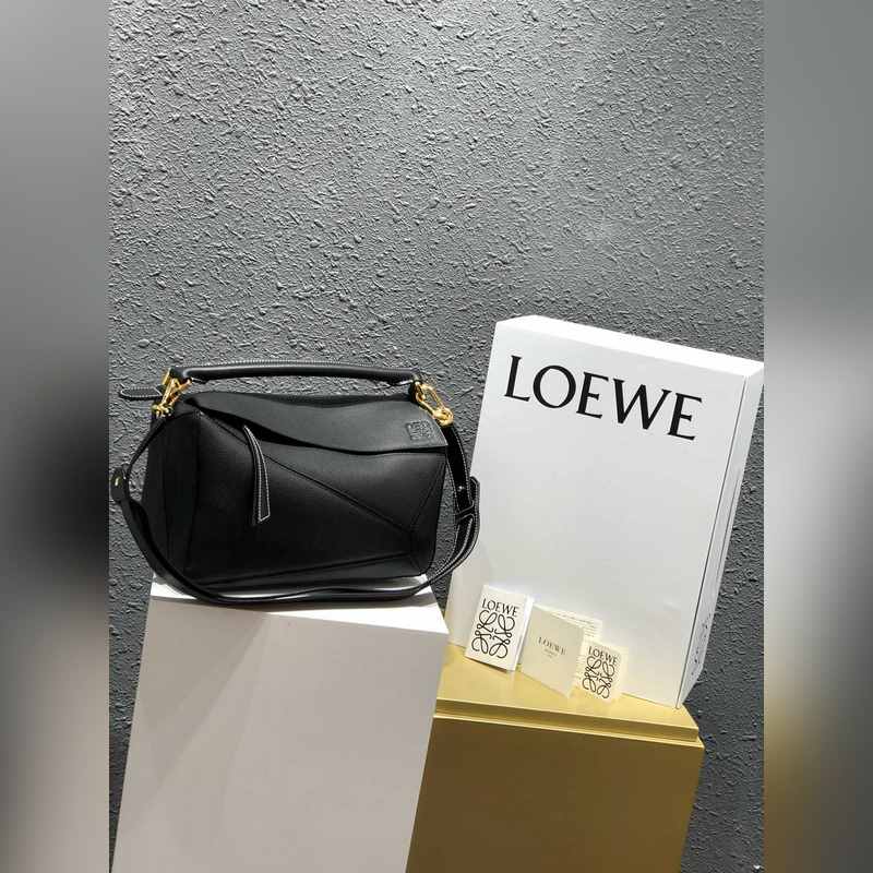 Loewe Puzzle Medium Black Pebbled Leather Aitoa laatua